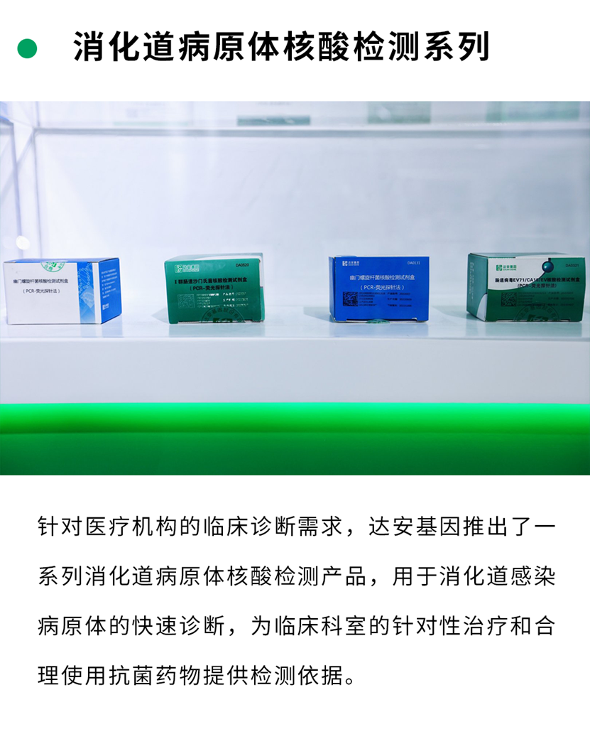 基于該平臺,達安基因可提供呼吸道病原體、肝炎病毒、腸道病毒、皰疹類病毒、蟲媒傳染病病原體、消化道病原體、生殖健康、個體化用藥等跨越多科室的檢測產品。